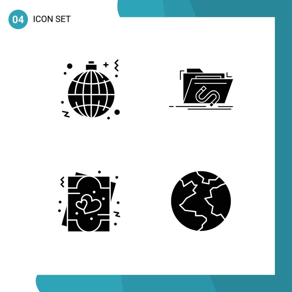 User Interface Pack of 4 Basic Solid Glyphs of globe software lamp exploit love Editable Vector Design Elements Free Vector