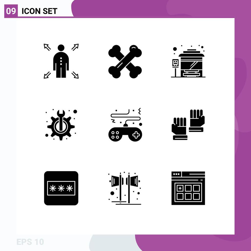 Pictogram Set of 9 Simple Solid Glyphs of controller pad stop game technical Editable Vector Design Elements