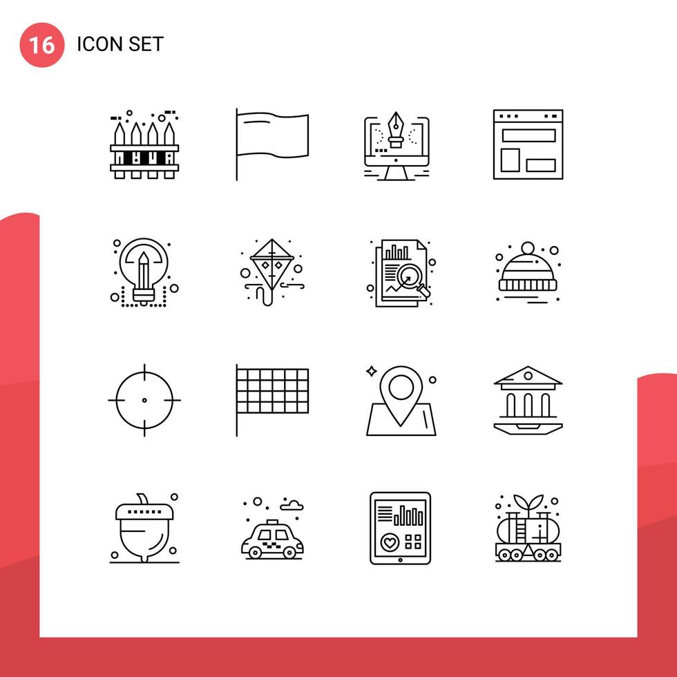 16 Universal Outline Signs Symbols of creative website drawing web layout blog layout Editable Vector Design Elements