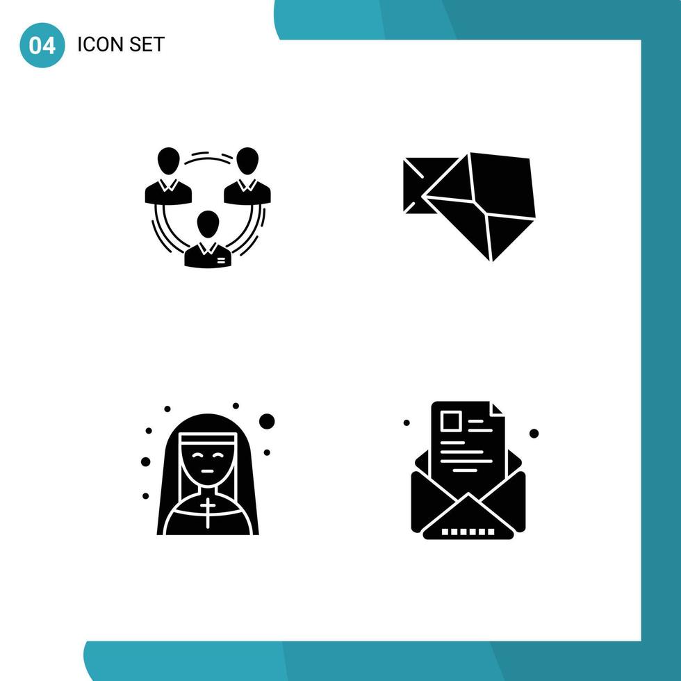 Stock Vector Icon Pack of 4 Line Signs and Symbols for team message hierarchy structure church Editable Vector Design Elements