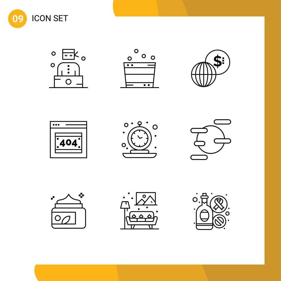 Pack of 9 Modern Outlines Signs and Symbols for Web Print Media such as clock server business http error error Editable Vector Design Elements Free Vector