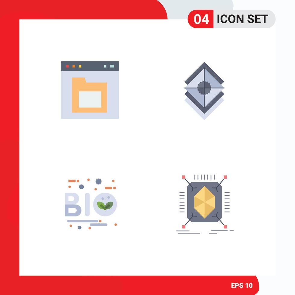 Pictogram Set of 4 Simple Flat Icons of browser layer folder design eco Editable Vector Design Elements