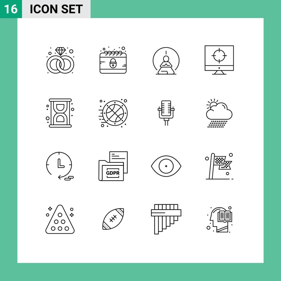 Group of 16 Outlines Signs and Symbols for loading targeting concentration target business Editable Vector Design Elements Free Vector