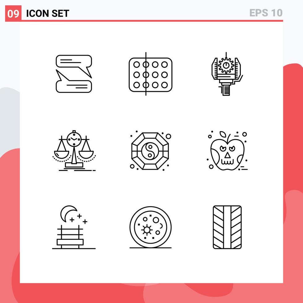 Group of 9 Outlines Signs and Symbols for strategy measure automation management robotics Editable Vector Design Elements Free Vector