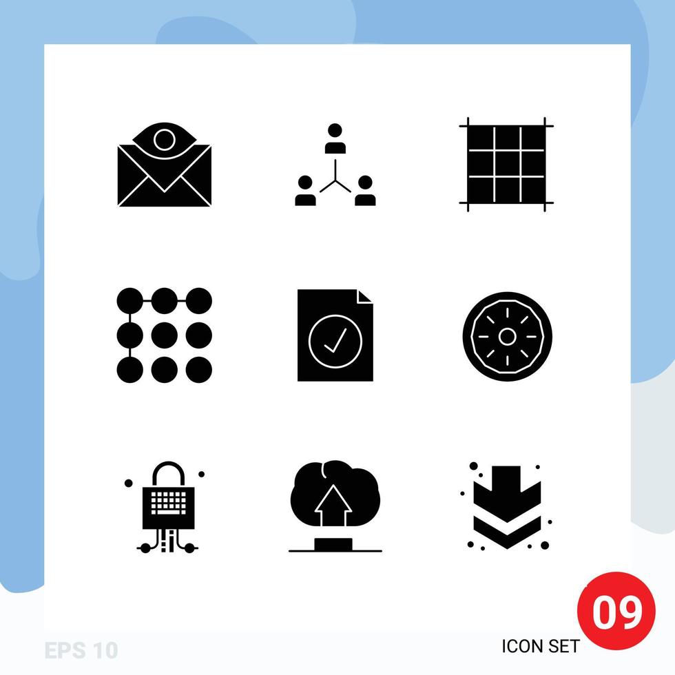 Pack of 9 creative Solid Glyphs of document security group pattern pixels Editable Vector Design Elements Free Vector