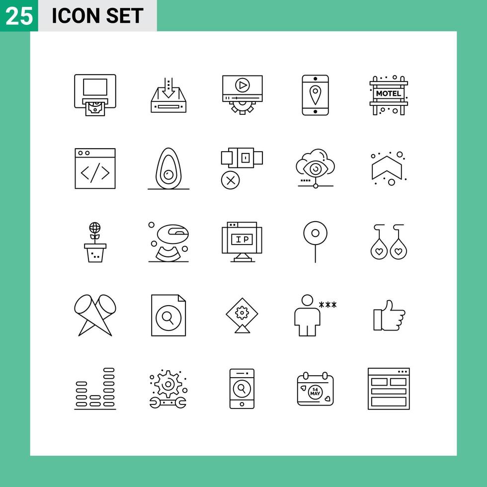 Group of 25 Modern Lines Set for motel cell project location design Editable Vector Design Elements