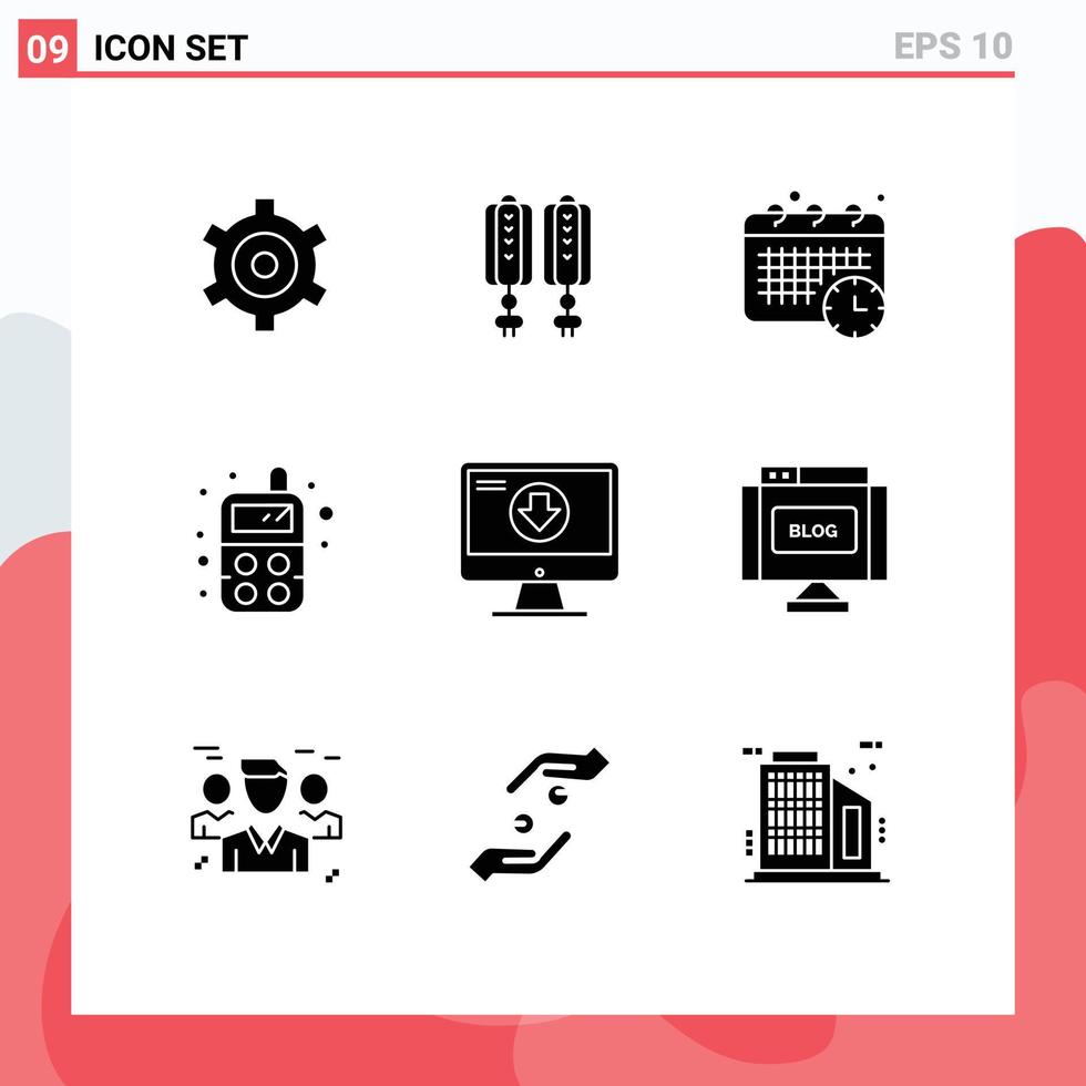 User Interface Pack of 9 Basic Solid Glyphs of download content schedule addition radio Editable Vector Design Elements Free Vector