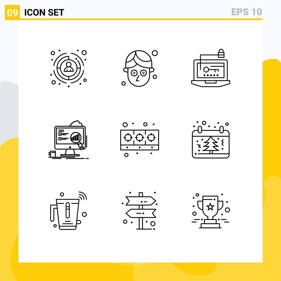 9 Universal Outlines Set for Web and Mobile Applications cooker laptop computer presentation analytics Editable Vector Design Elements