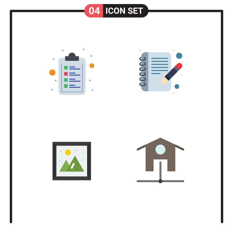 User Interface Pack of 4 Basic Flat Icons of check list picture book image smart house Editable Vector Design Elements Free Vector