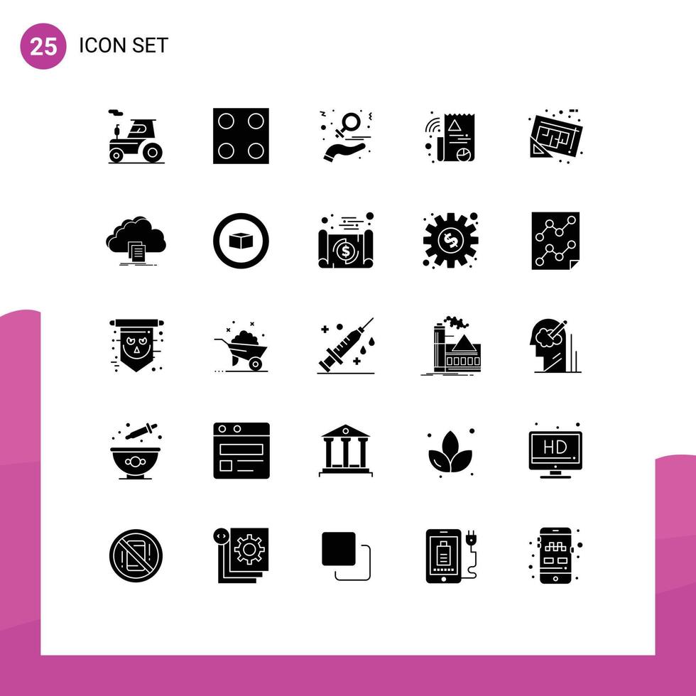 Universal Icon Symbols Group of 25 Modern Solid Glyphs of map blueprint day file digital Editable Vector Design Elements