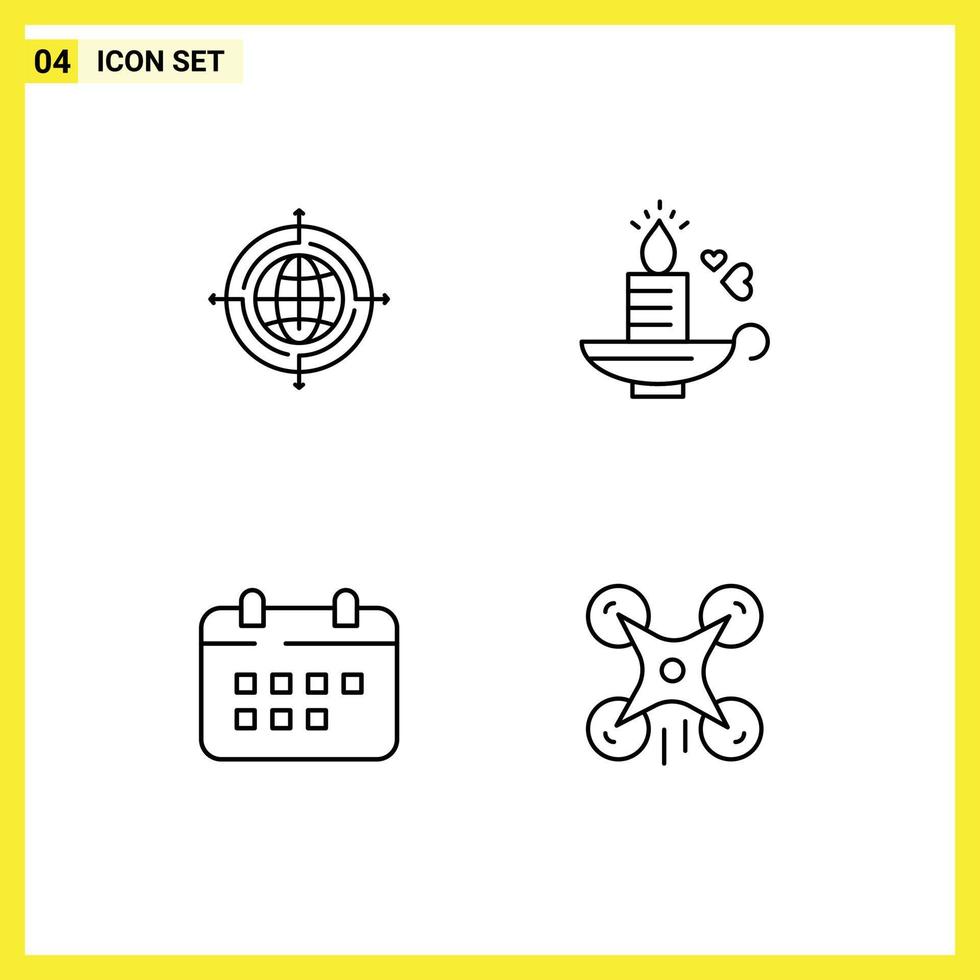Mobile Interface Line Set of 4 Pictograms of globe schedule connected heart appointment Editable Vector Design Elements