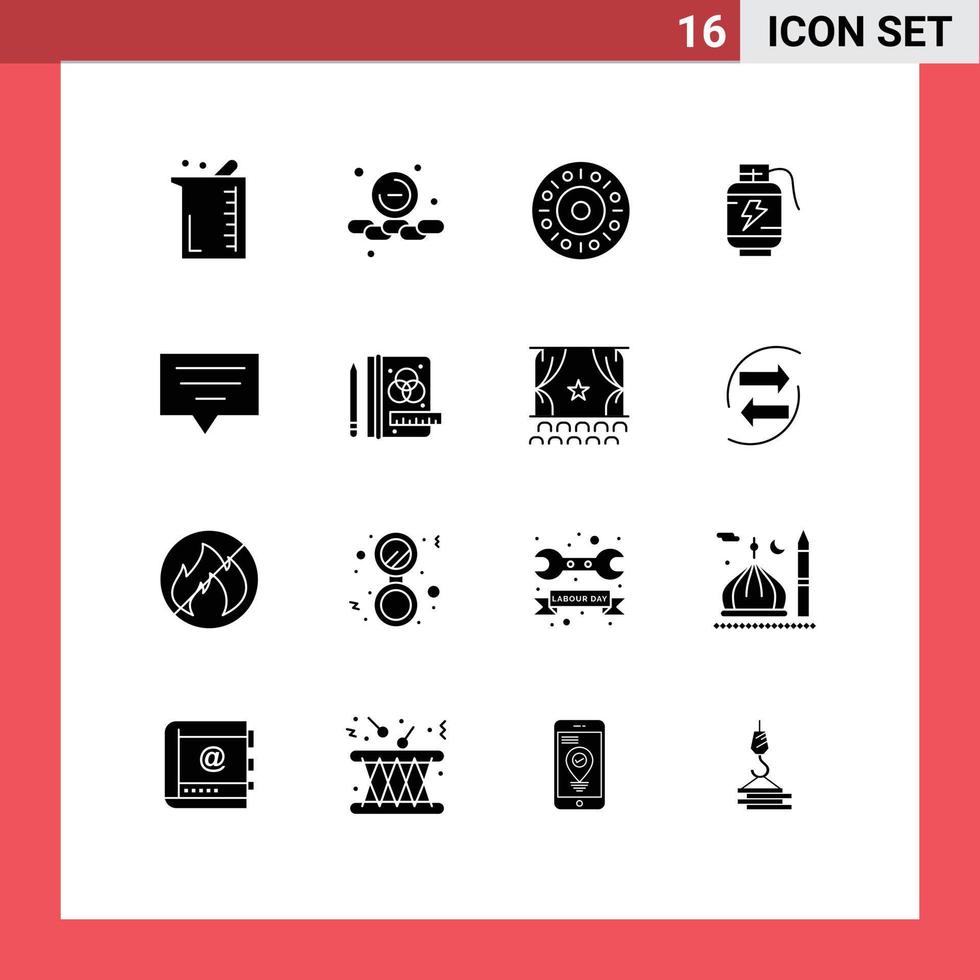 16 Universal Solid Glyphs Set for Web and Mobile Applications chat charg web power acumulator Editable Vector Design Elements