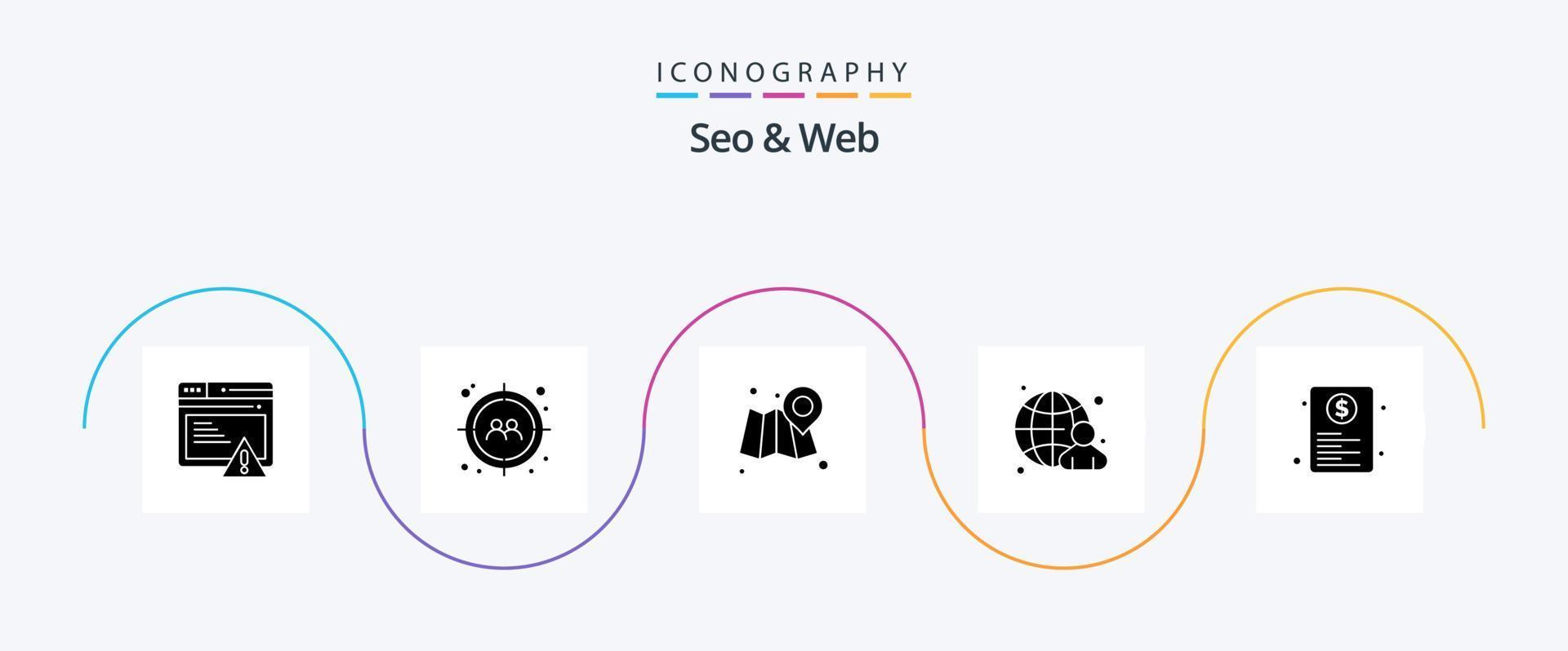 Seo and Web Glyph 5 Icon Pack Including page. document. web. internet. globe Free Vector