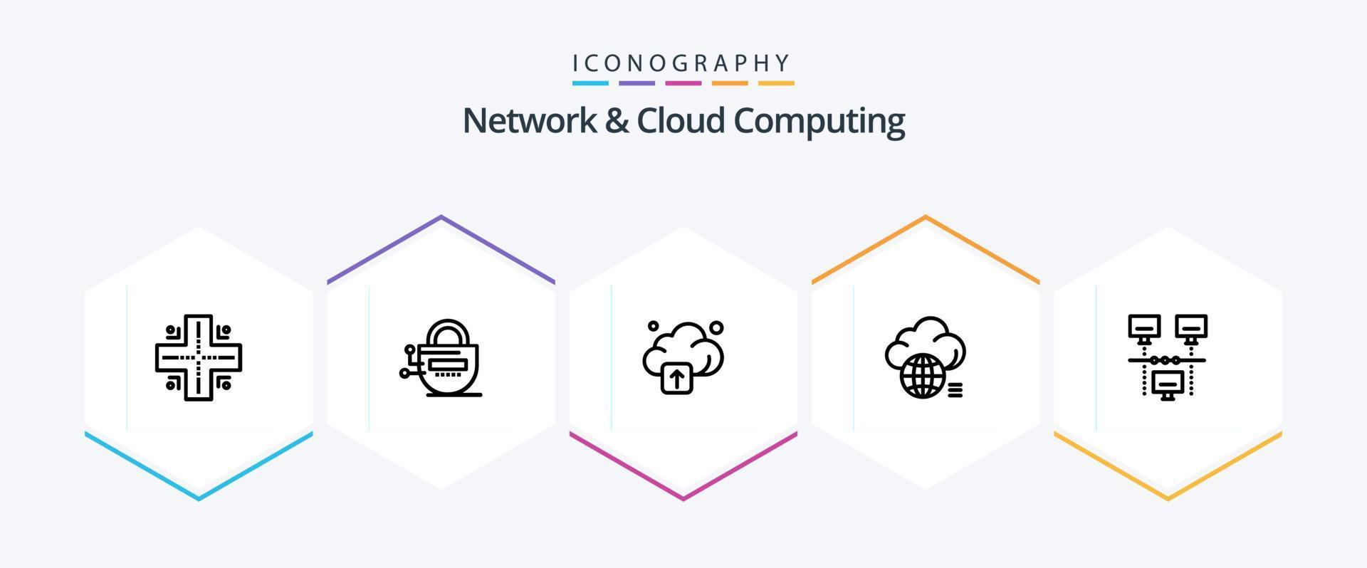 Network And Cloud Computing 25 Line icon pack including sharing. connection. upload. technology. light Free Vector