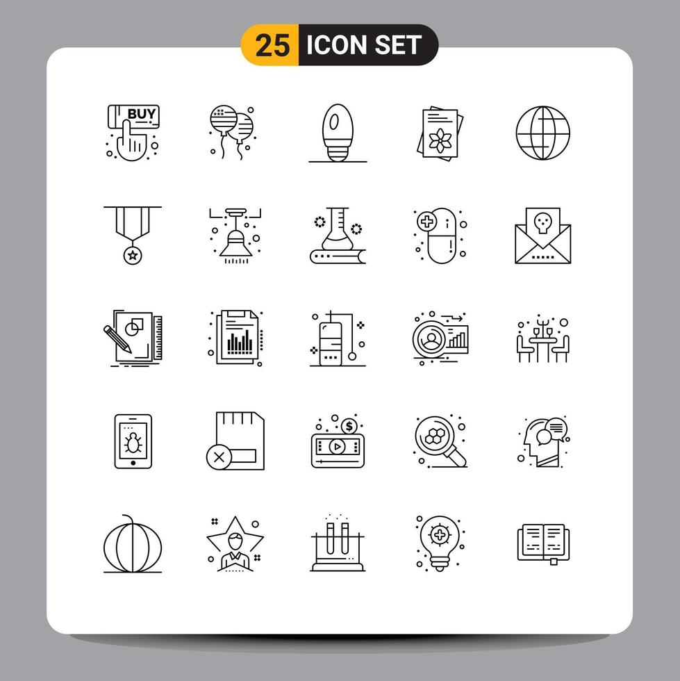 25 Thematic Vector Lines and Editable Symbols of internet global bulb spring file Editable Vector Design Elements