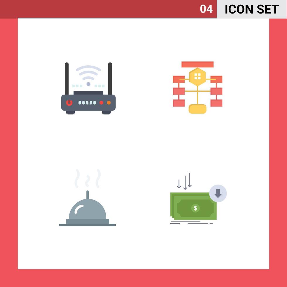4 Flat Icon concept for Websites Mobile and Apps router database internet flow food Editable Vector Design Elements Free Vector