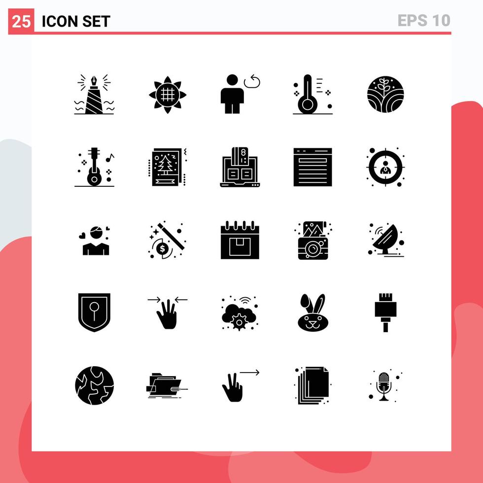 Mobile Interface Solid Glyph Set of 25 Pictograms of temperature design thanksgiving cloudy loop Editable Vector Design Elements Free Vector