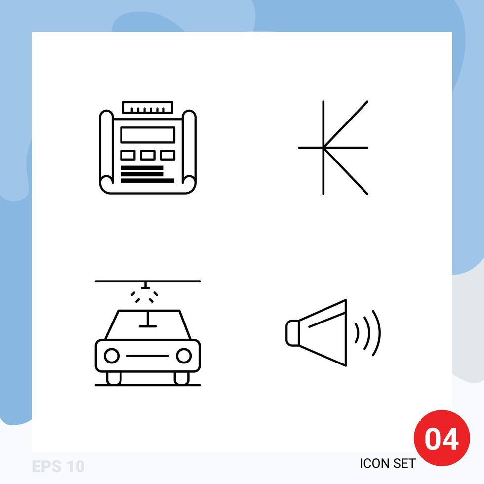 Mobile Interface Line Set of 4 Pictograms of blueprint car drawing kip sound Editable Vector Design Elements