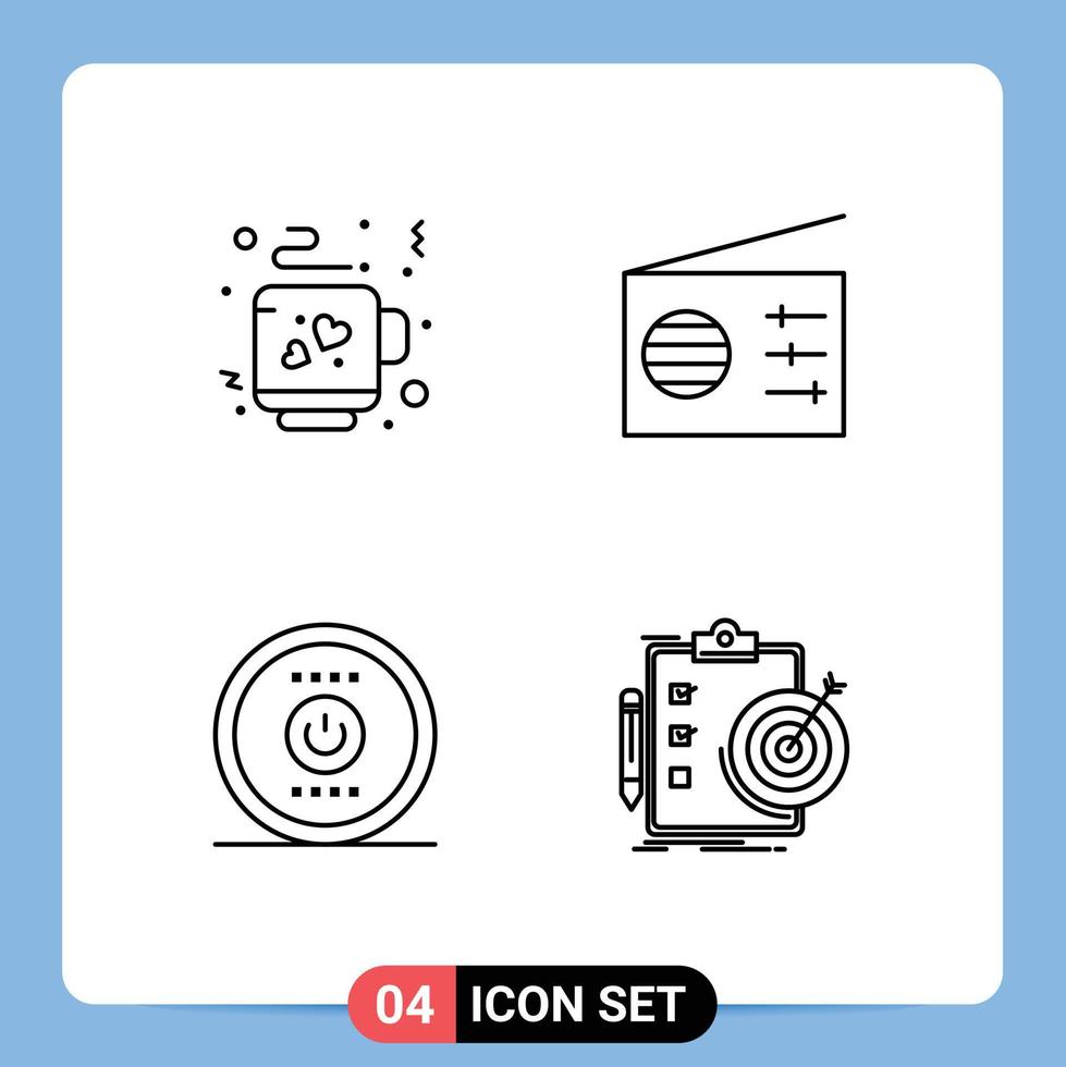 Set of 4 Modern UI Icons Symbols Signs for coffee power media computing report Editable Vector Design Elements