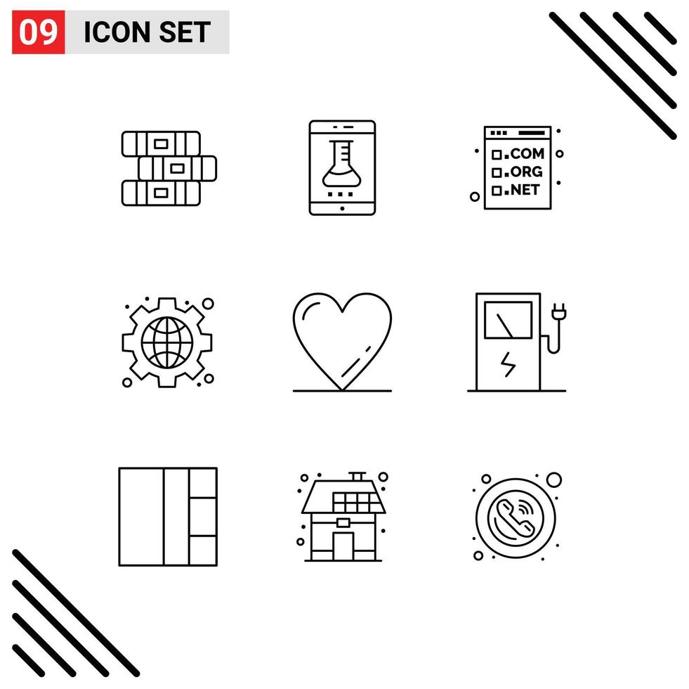 Set of 9 Vector Outlines on Grid for heart web browser interface programming Editable Vector Design Elements Free Vector