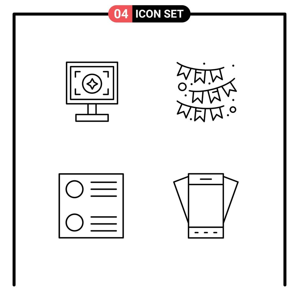 Mobile Interface Line Set of 4 Pictograms of brand radio button print party mobile Editable Vector Design Elements