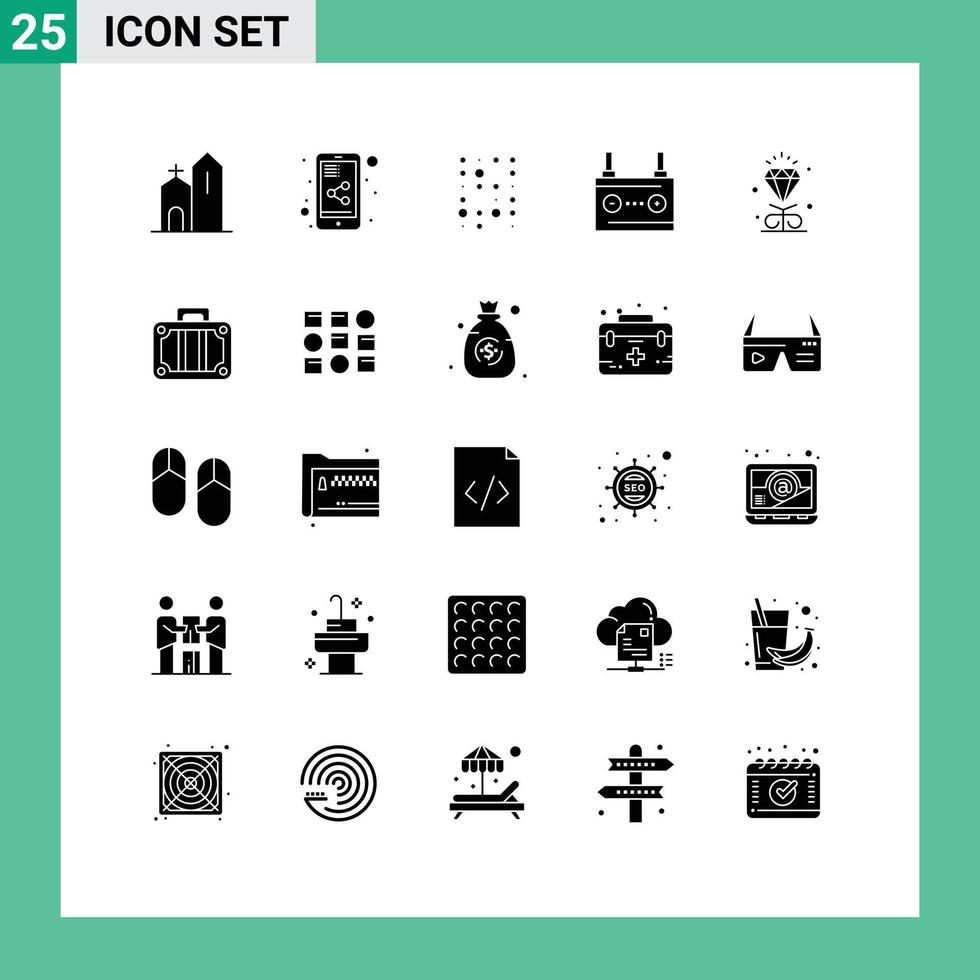 25 Universal Solid Glyphs Set for Web and Mobile Applications diamond electricity unstructure car accumulator Editable Vector Design Elements Free Vector