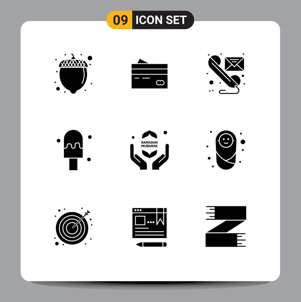 Set of 9 Vector Solid Glyphs on Grid for ice telephone finance send message Editable Vector Design Elements Free Vector and Free SVG
