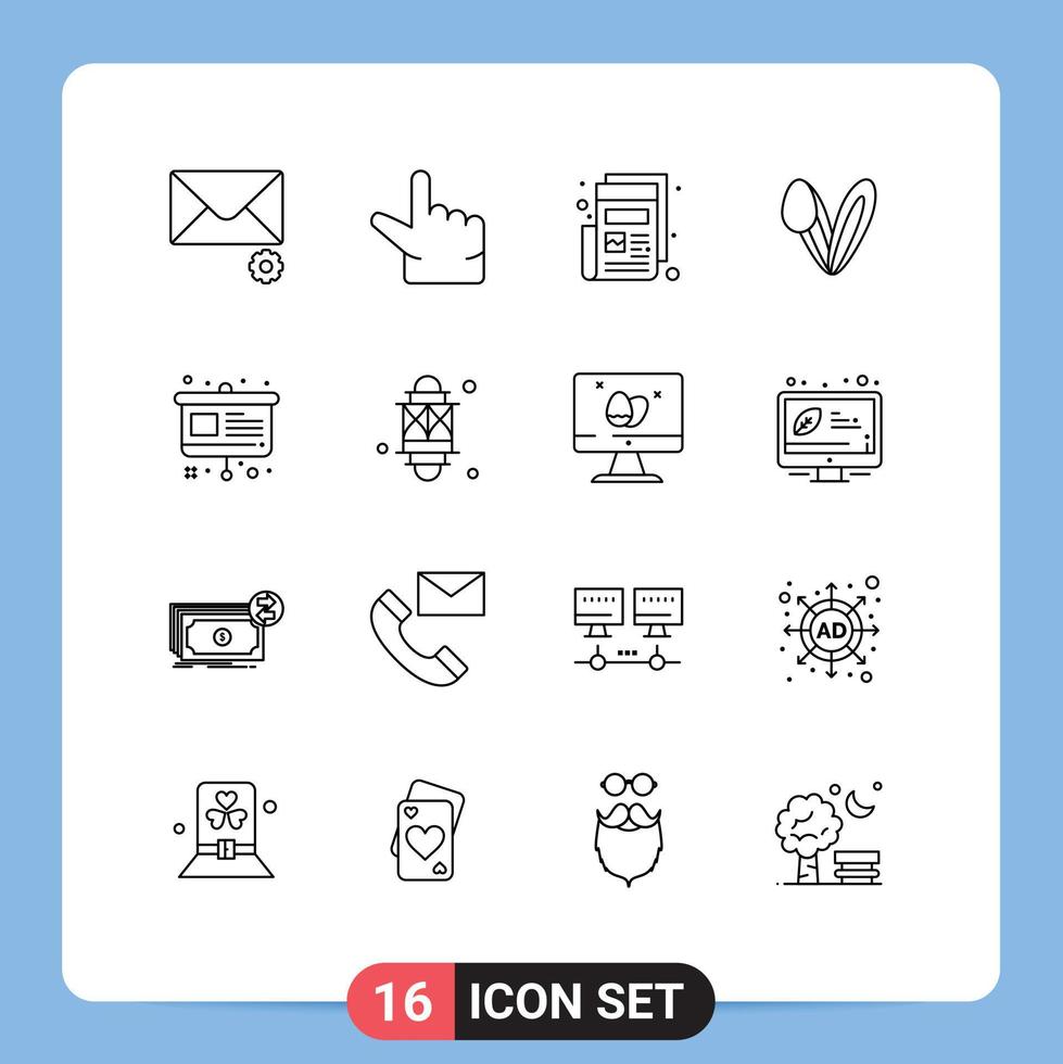 Universal Icon Symbols Group of 16 Modern Outlines of lantern easel print chart rabbit Editable Vector Design Elements