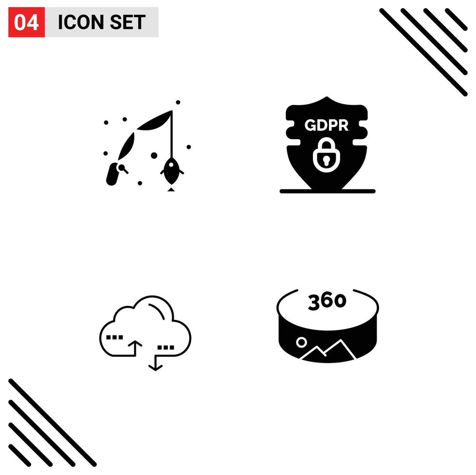 4 Solid Glyph concept for Websites Mobile and Apps fish computing hobby privacy data Editable Vector Design Elements