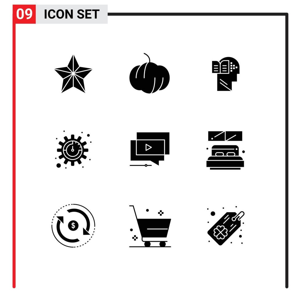 Group of 9 Solid Glyphs Signs and Symbols for presentation tutorial head youtube settings Editable Vector Design Elements Free Vector