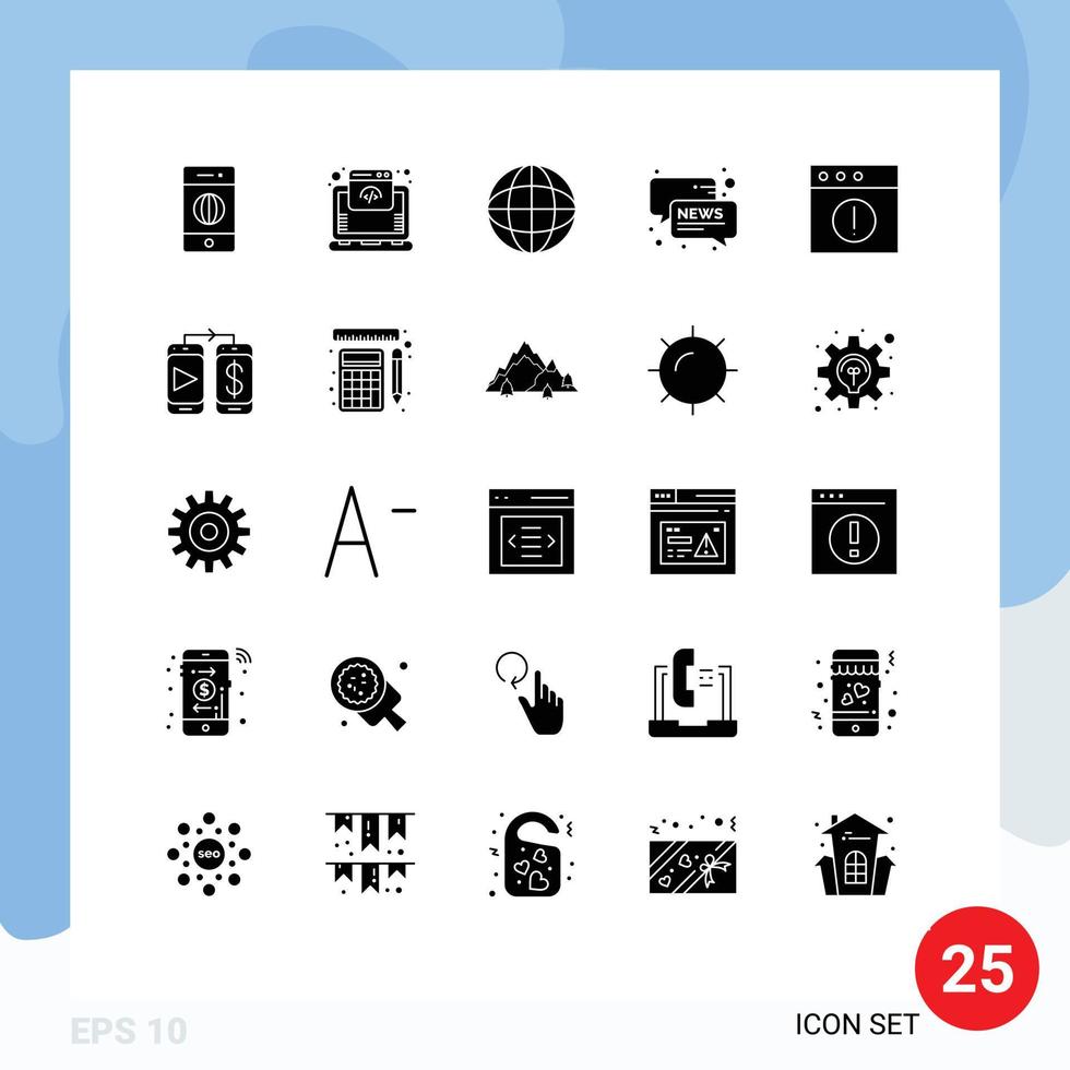 Universal Icon Symbols Group of 25 Modern Solid Glyphs of mobile app map alert message Editable Vector Design Elements