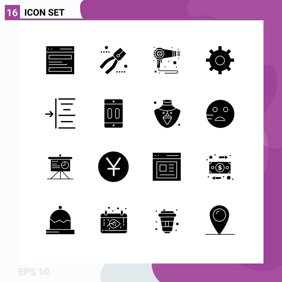 User Interface Pack of 16 Basic Solid Glyphs of left setting tool multimedia machine Editable Vector Design Elements Free Vector