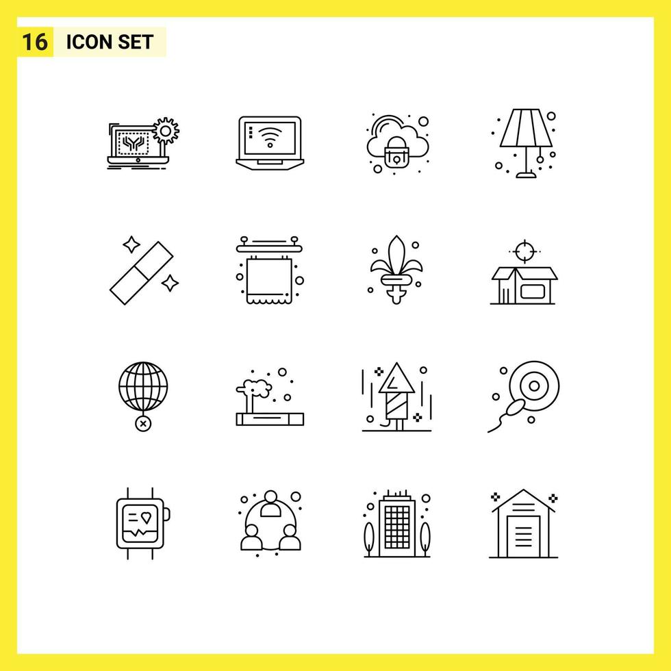 User Interface Pack of 16 Basic Outlines of design light wifi lamp secure Editable Vector Design Elements Free Vector