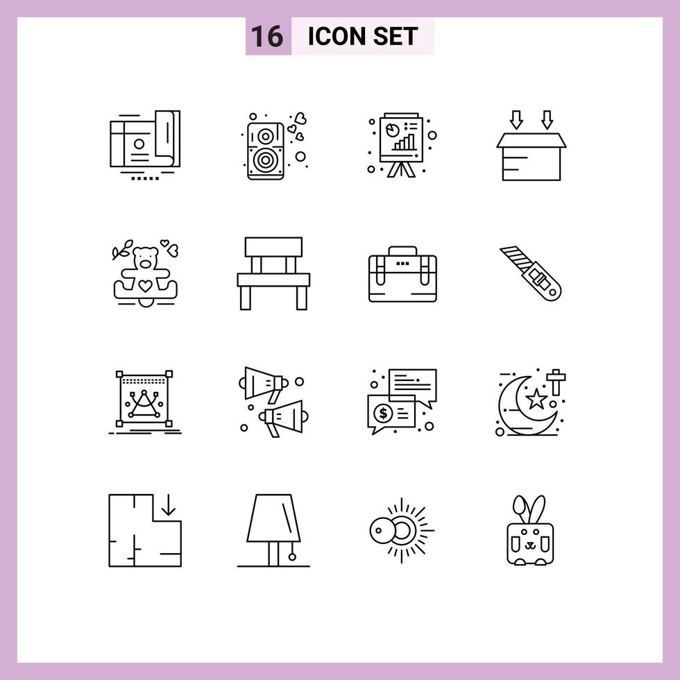 Editable Vector Line Pack of 16 Simple Outlines of loving hearts analytics open box Editable Vector Design Elements