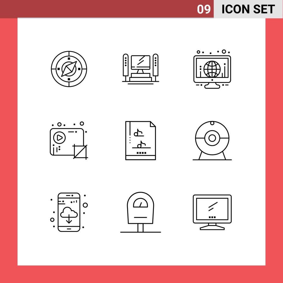 Mobile Interface Outline Set of 9 Pictograms of file document production globe media audio Editable Vector Design Elements