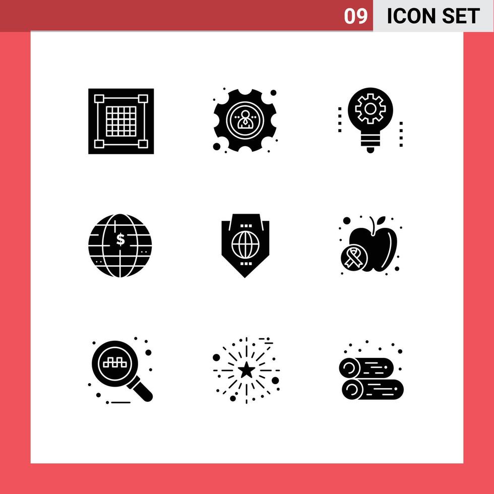 Group of 9 Modern Solid Glyphs Set for decentralized blockchain ai bitcoin robotics Editable Vector Design Elements