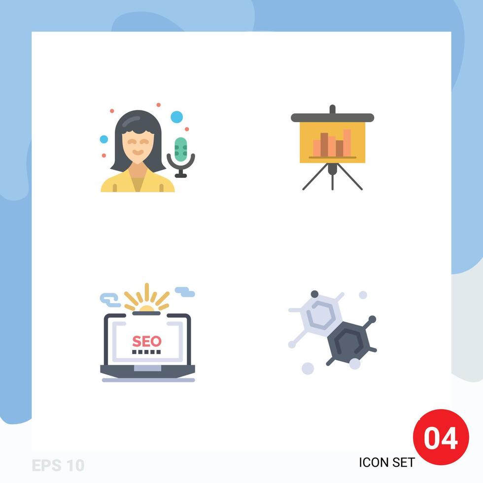 4 Universal Flat Icons Set for Web and Mobile Applications female setting presentation report web Editable Vector Design Elements