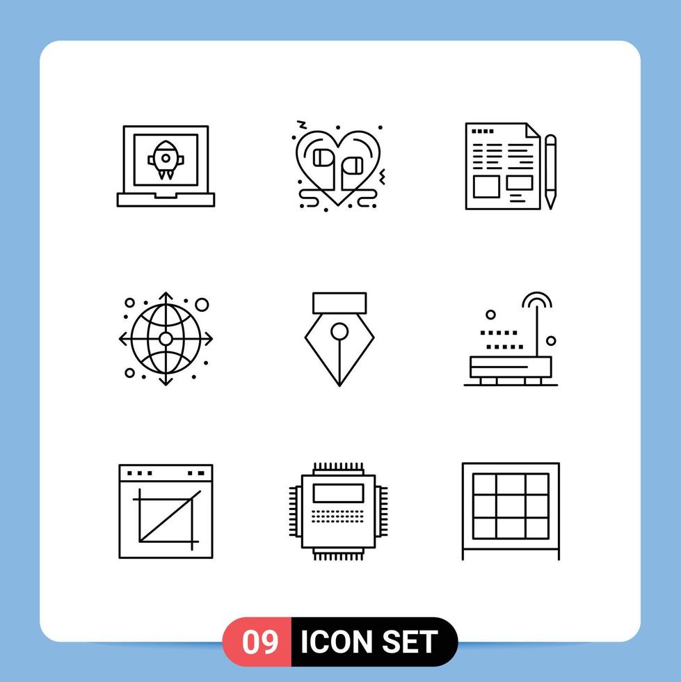 Mobile Interface Outline Set of 9 Pictograms of editor internet romantic globe education Editable Vector Design Elements Free Vector and Free SVG