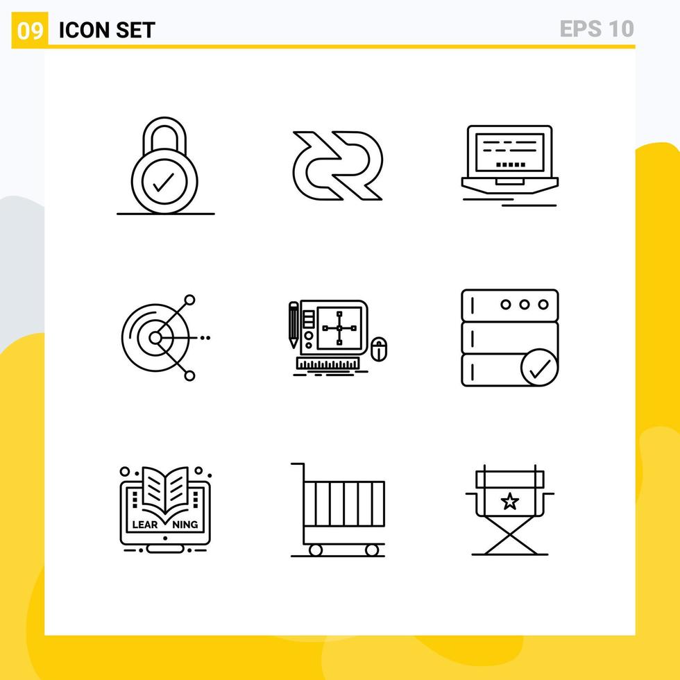 9 Thematic Vector Outlines and Editable Symbols of tool design laptop hard drive disk computing Editable Vector Design Elements Free Vector