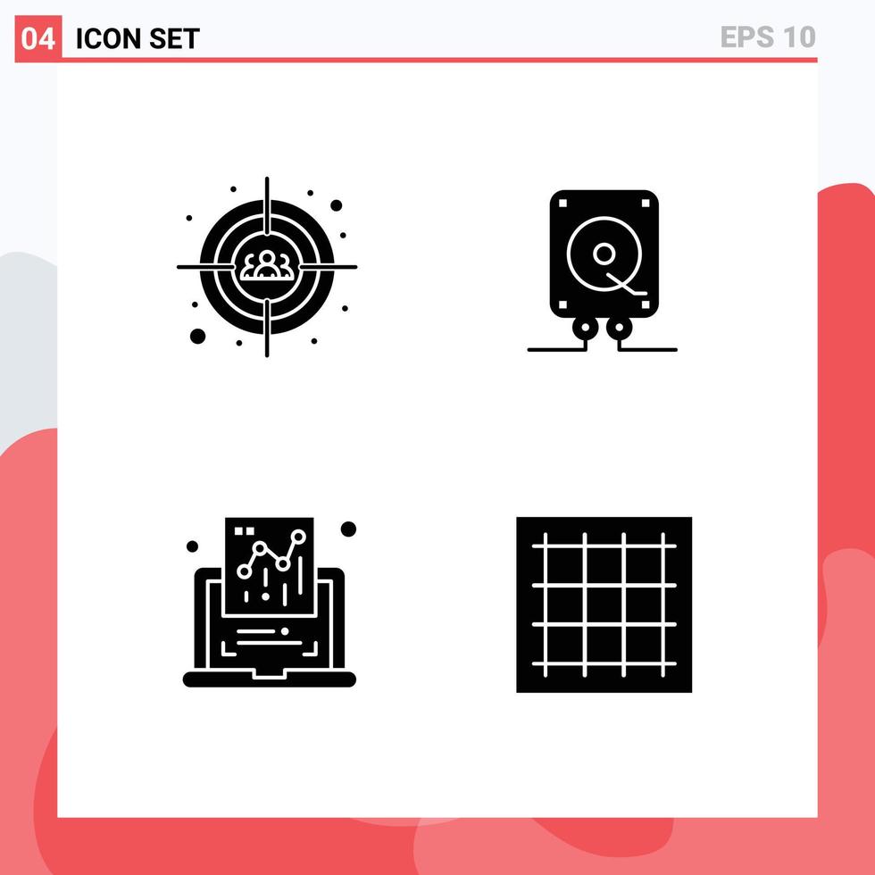 4 User Interface Solid Glyph Pack of modern Signs and Symbols of auditory document head shot computing report Editable Vector Design Elements Free Vector