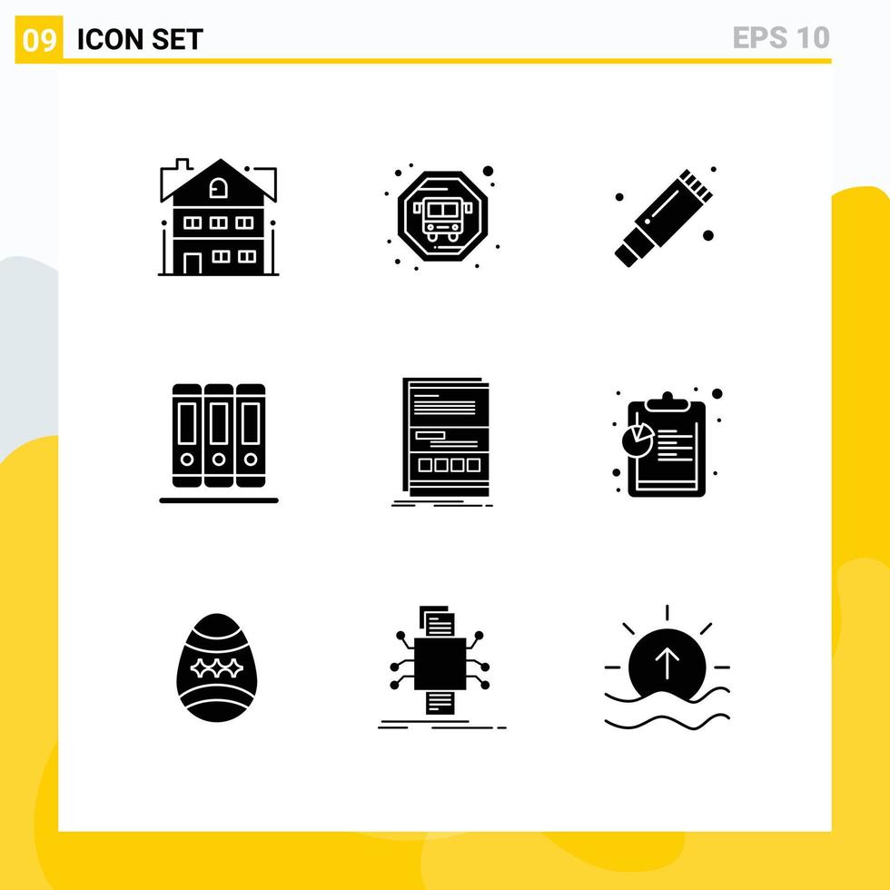 Group of 9 Modern Solid Glyphs Set for responsive internet rubber dynamic library Editable Vector Design Elements