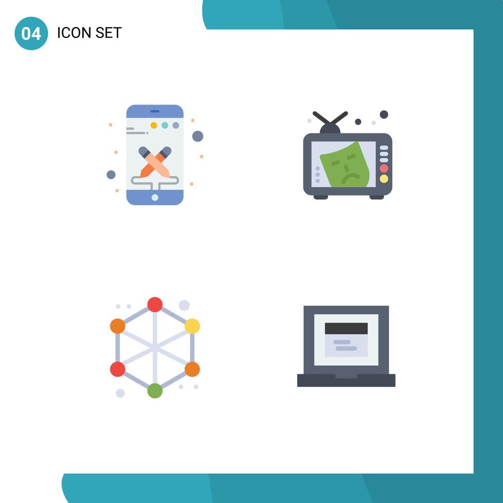 User Interface Pack of 4 Basic Flat Icons of design analytics tools art server Editable Vector Design Elements Free Vector