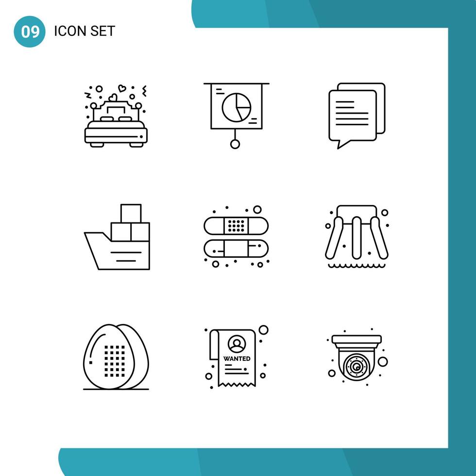 9 Universal Outlines Set for Web and Mobile Applications ship logistic pie good message Editable Vector Design Elements