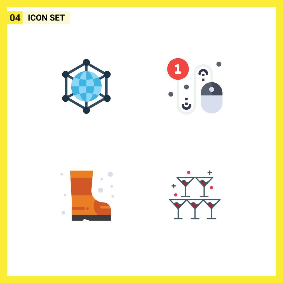 Mobile Interface Flat Icon Set of 4 Pictograms of analytics pay per click web buy fire Editable Vector Design Elements Free Vector