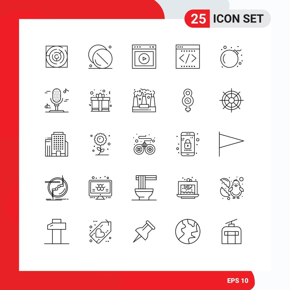 User Interface Pack of 25 Basic Lines of company business medical website ux Editable Vector Design Elements Free Vector