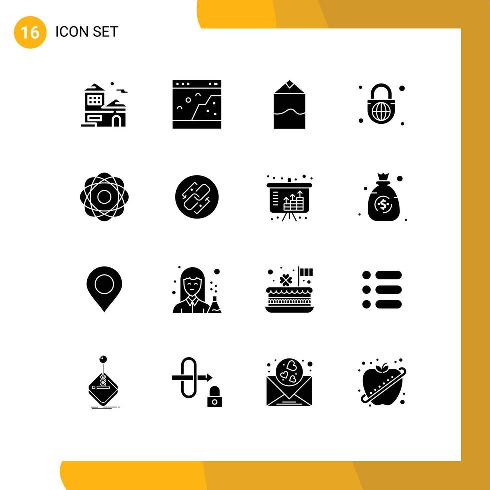 Set of 16 Modern UI Icons Symbols Signs for molecular globe with lock picture globe lock security Editable Vector Design Elements