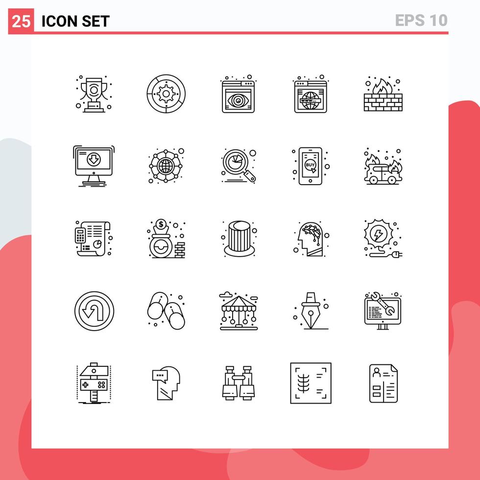 Universal Icon Symbols Group of 25 Modern Lines of world web process search browser Editable Vector Design Elements