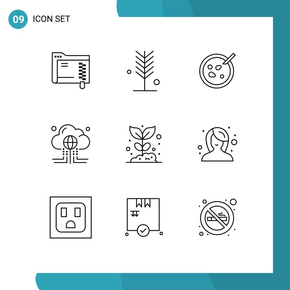 Pictogram Set of 9 Simple Outlines of internet data tree computing medical Editable Vector Design Elements