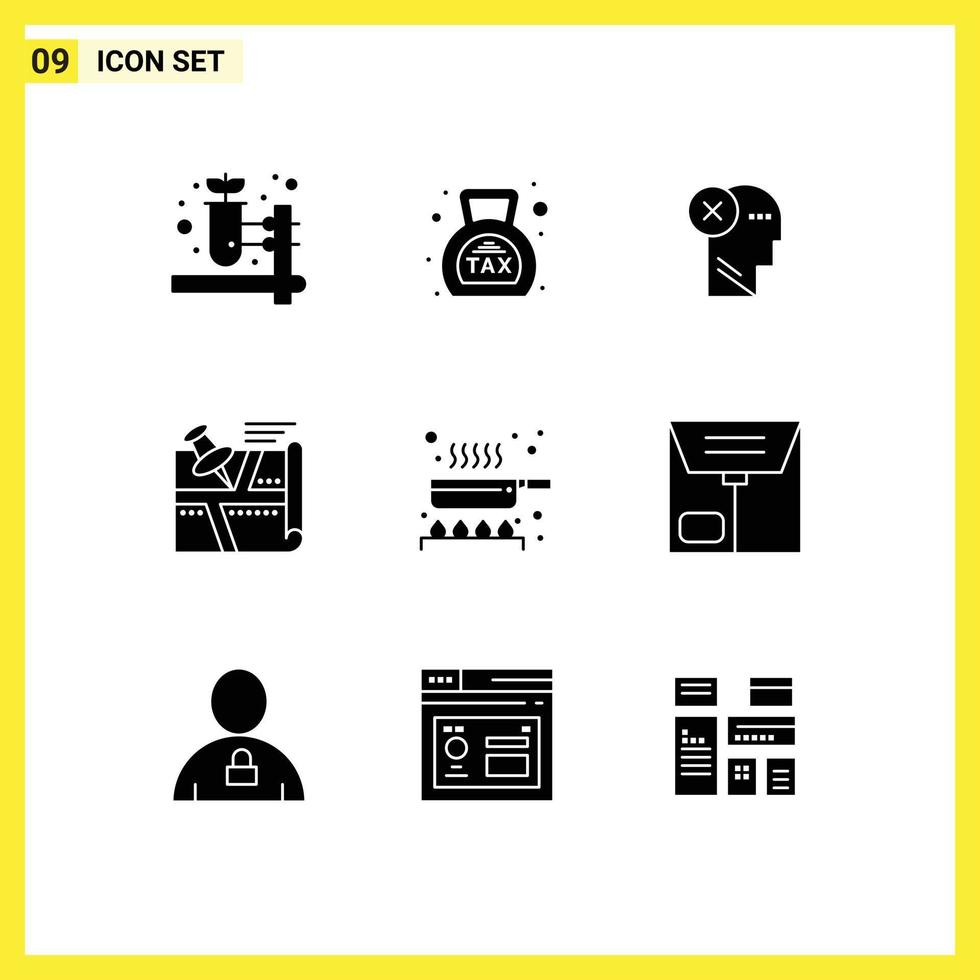 Set of 9 Vector Solid Glyphs on Grid for position location brain thinking mark Editable Vector Design Elements