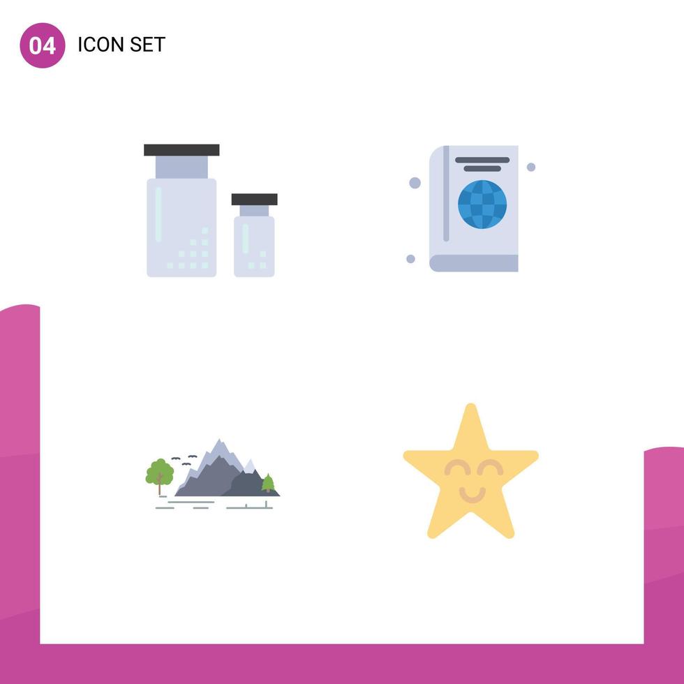 Pack of 4 Modern Flat Icons Signs and Symbols for Web Print Media such as coding diary development book landscape Editable Vector Design Elements Free Vector